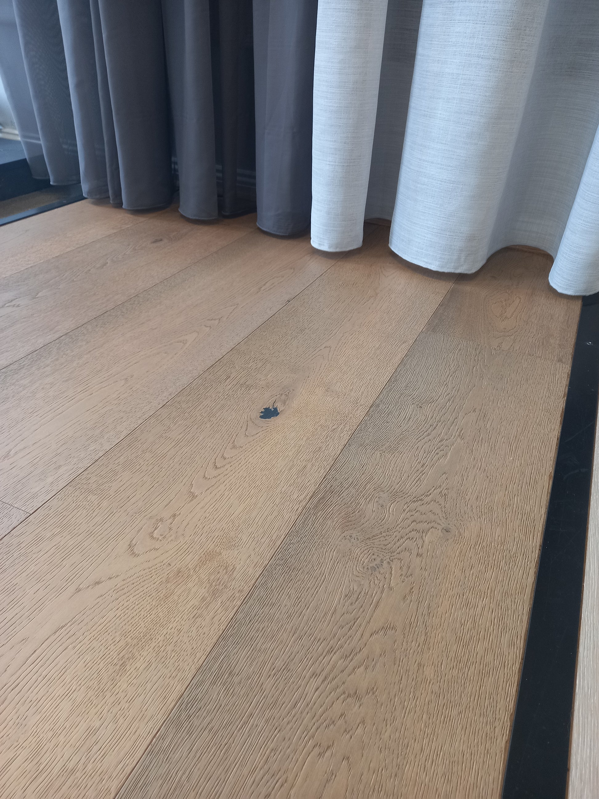 Exposure to sunlight's UV rays accelerates oxidation and aging of materials. This may change the colour of the floor. Periodically rearrange the furniture to allow the floor to age evenly.