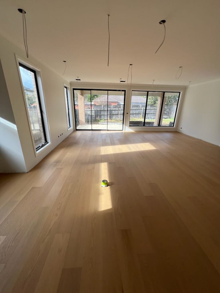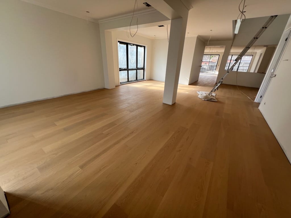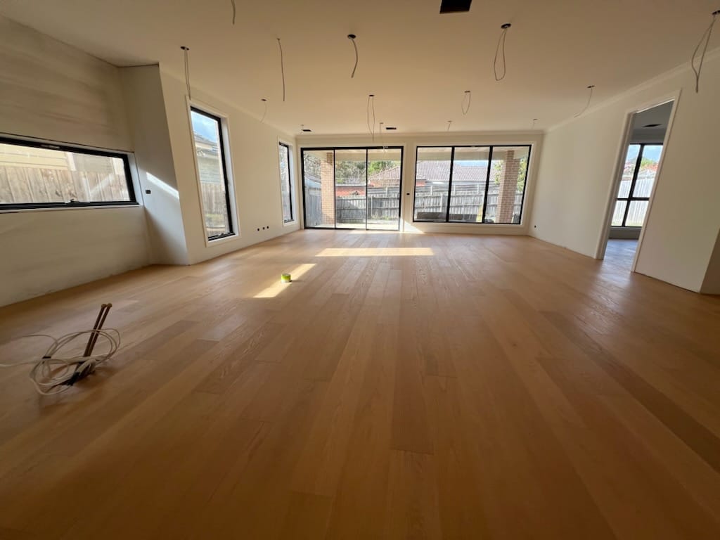 Avoid placing rugs, mats, or very heavy furniture on the floor until it has fully acclimatised, which typically takes about 8 weeks. Additionally, direct sunlight should be minimised with window coverings to prevent heat-related damage.